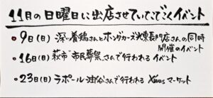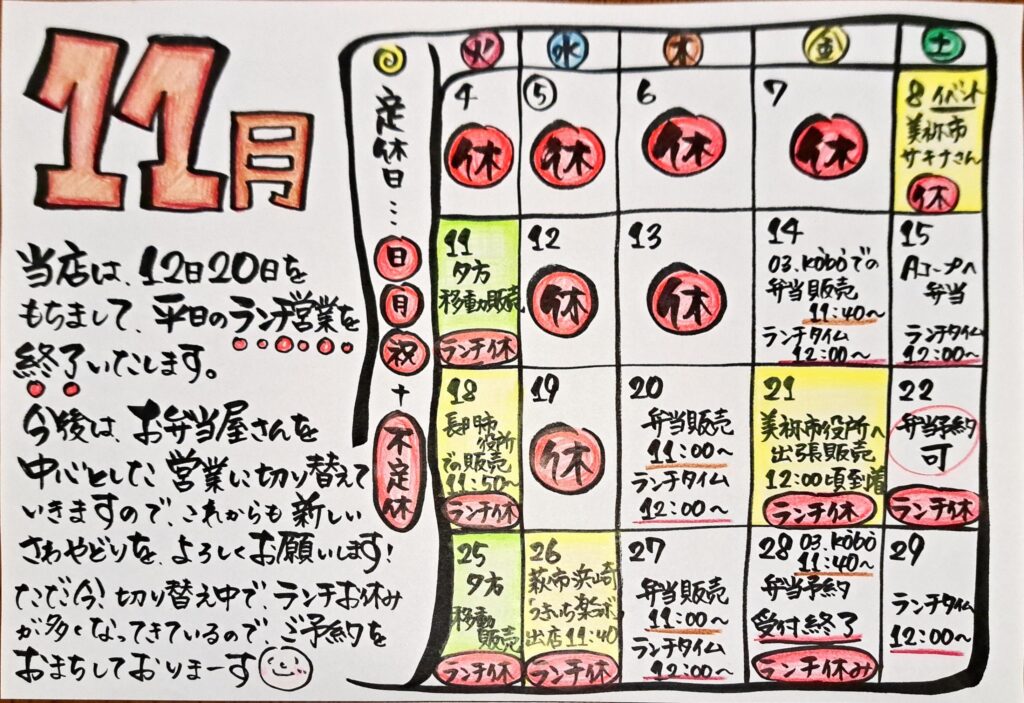 イベント出店や、定期販売等が増えてきましたので、ランチ営業の日が5日間しかありません!