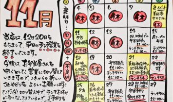 【11月の予定表】今月は始めの1週間お休みをいただきます。イベント出店や、定期販売等が増えてきましたので、ランチ営業の日が5日間しかありません!ラスト1ヶ月のランチ営業となりましたが、ご予定されているかたは、ご予約をおすすめいたします(*´-`*)●X'm…